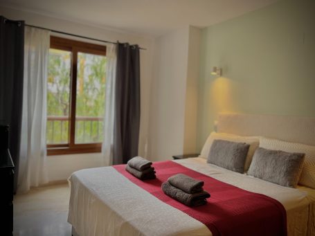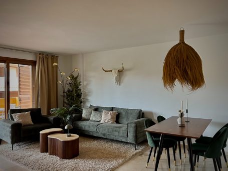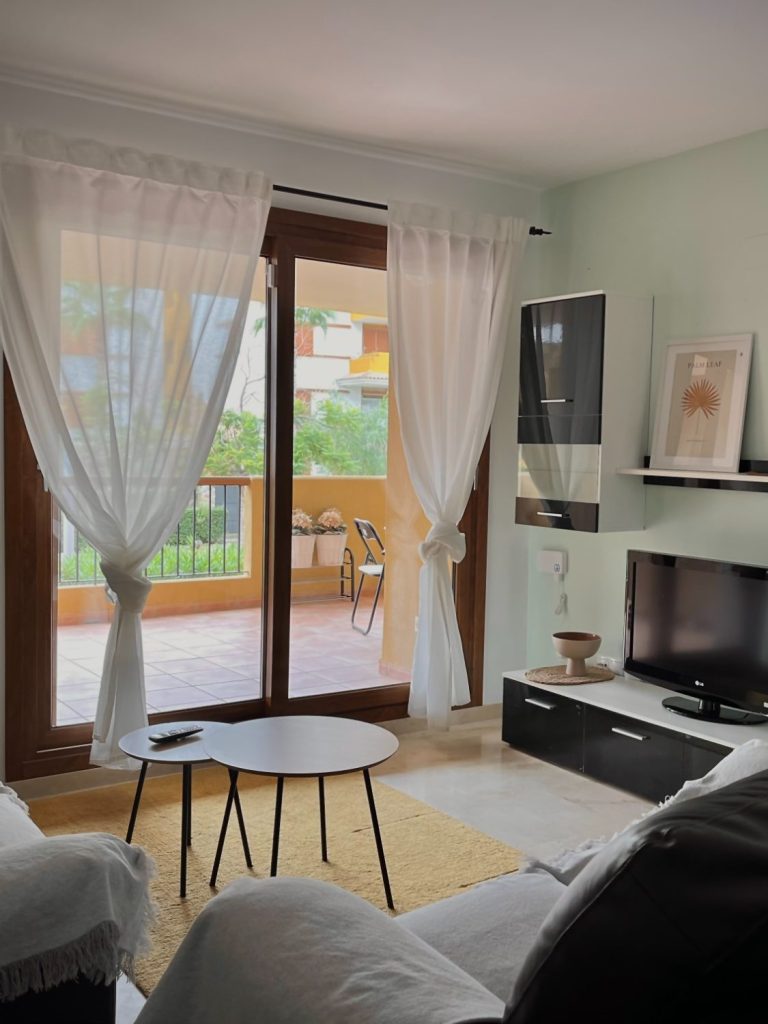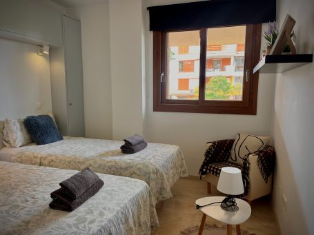 Žavūs apartamentai su 2 miegamaisiais, 2 vonios kambariais ir terasa su vaizdu į gražų parką, vos 700 metrų nuo paplūdimio.