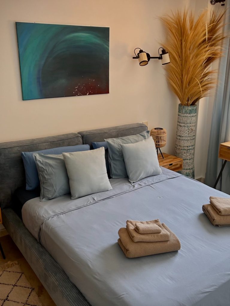 Apartamentuose yra įrengta virtuvė, oro kondicionierius ir „WiFi“, netoli restoranų, parduotuvių ir visų patogumų.